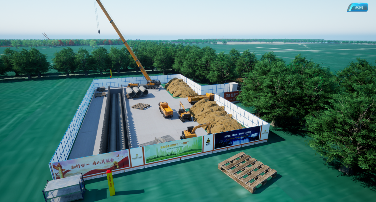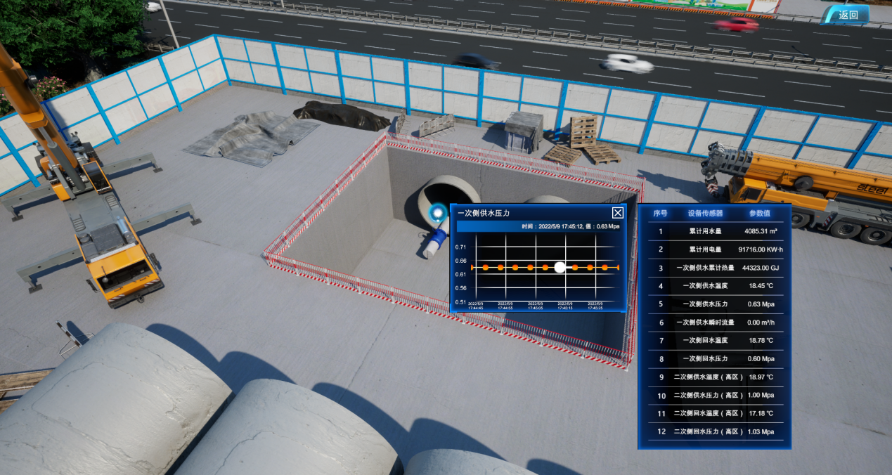 針對“東城智慧”項目,對潘王路段采用三站一網(wǎng)技術(shù)結(jié)合,進(jìn)行實景還原與施工場景模擬展示,通過光纖與數(shù)控設(shè)備的數(shù)據(jù)與平臺掛接。